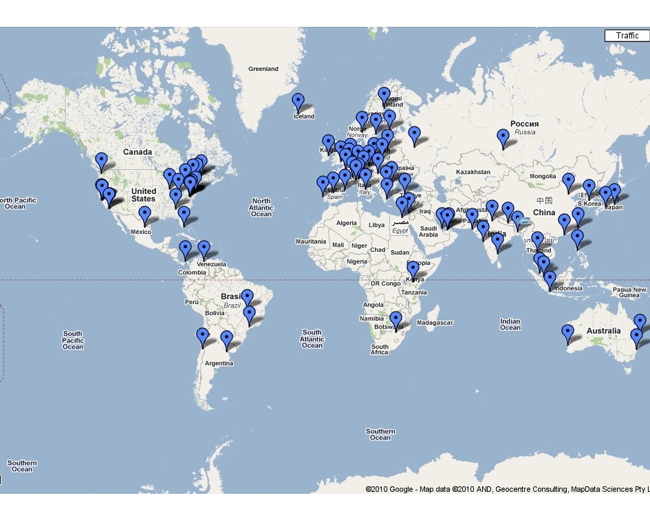 Como informei, existe treze root servers no planeta, e outras dezenas de réplicas , veja abaixo a localização de cada um deles.